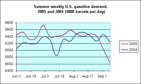 We have certainly seen this in the camping and travel business, as visitation has fallen off the map of late, though fortunately it comes right at the end of the season. It appears that demand has fallen about 10% with the increase to circa $3 gas, about matching the shortfall in US refining capacity post-Katrina. Does anyone doubt that we would have seen gas lines had prices not risen?