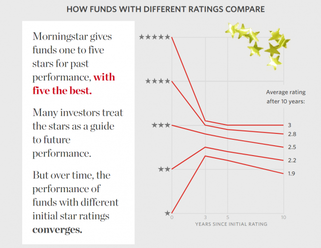 Yes, the 5-star funds from 10 years ago only average 3 today. Everything regresses towards the mean, as we random walk folks might expect.