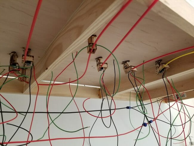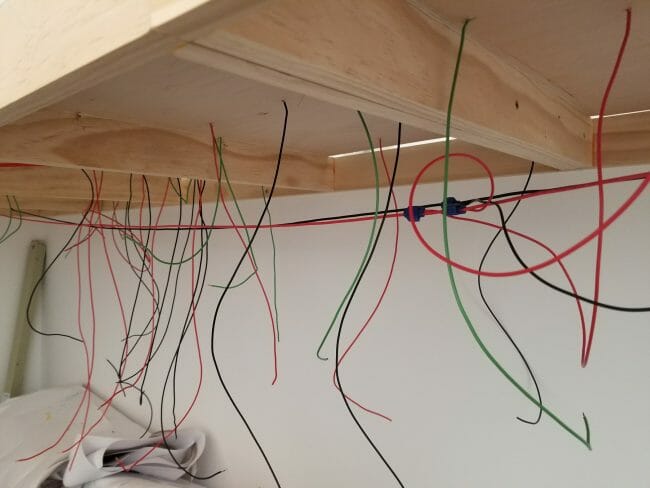 The next step was to start on the wiring. I find the wiring to be extremely tedious, but it is easier for this layout than on my past efforts because the benchwork is relatively high so I can sit in a chair and work on the wiring underneath.